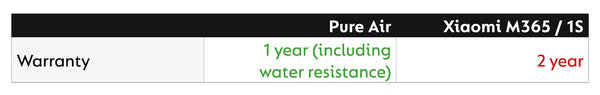 Pure’s warranty for the Air is one year long, but does include coverage for riding in the rain and the 120kg maximum load, which the M365 / 1S’s warranty can’t match.
