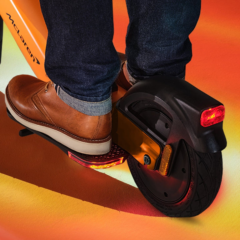 Our top of the range Flex, now in partnership with McLaren in their historic Papaya colourway - made iconic by racing legends. The Flex is the world’s most compact e-scooter - built for performance and space-saving convenience. Its forward-facing stance and Active Steering Stabilisation ensure unmatched control for a smooth ride.