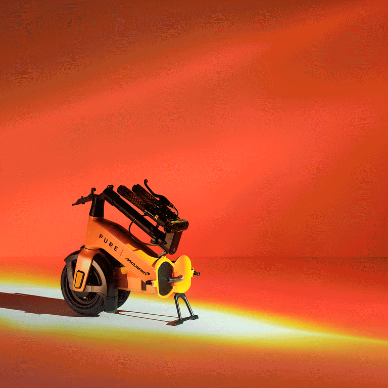 Our top of the range Flex, now in partnership with McLaren in their historic Papaya colourway - made iconic by racing legends. The Flex is the world’s most compact e-scooter - built for performance and space-saving convenience. Its forward-facing stance and Active Steering Stabilisation ensure unmatched control for a smooth ride.